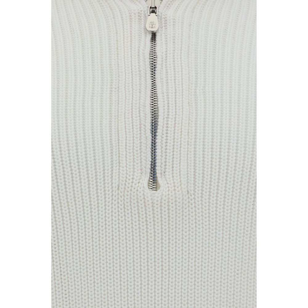 Colete de algodão da Brunello Cucinelli, gola alta, zíper frontal na metade do busto, bainha canelada fina, design canelado largo por toda a peça.