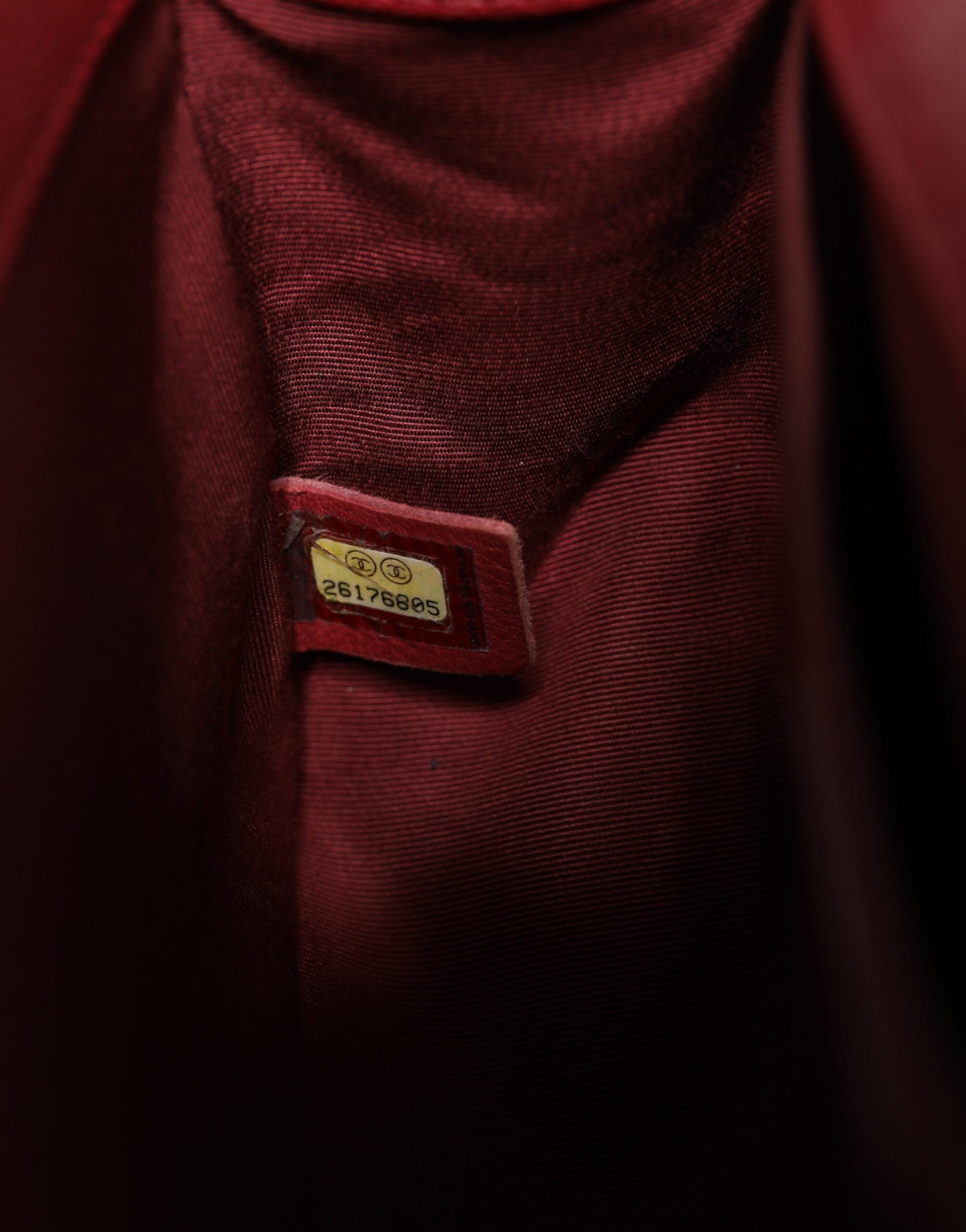 Esta bolsa Chanel Boy, tamanho médio, é feita em lindo couro caviar vermelho.