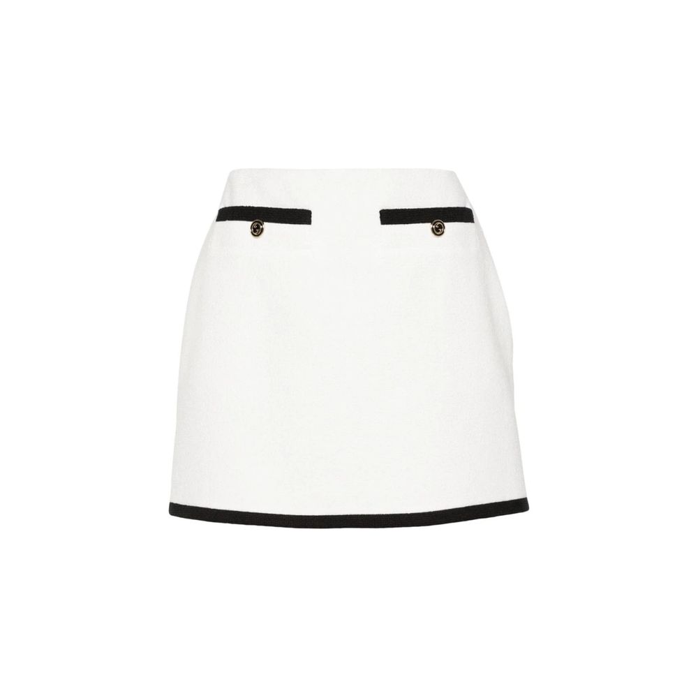 – Composição: 91% Algodão 9% Poliamida – Forro: Viscose – Lavagem à mão – Fechamento em zíper – Cintura baixa – Forro dos bolsos: 100% Cupro – Tweed de algodão na cor giz – Acabamentos em preto – Botões esmaltados com cruz redonda GG – Dois bolsos frontais com botões – Fabricado na Itália – Gênero: FEMININO –