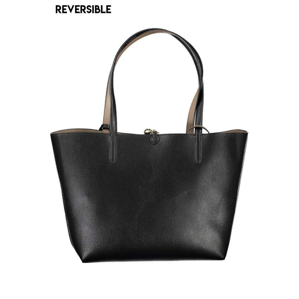 bolsa com 2 alças de ombro reversíveis, bolso interno removível, fecho de pressão, logotipo