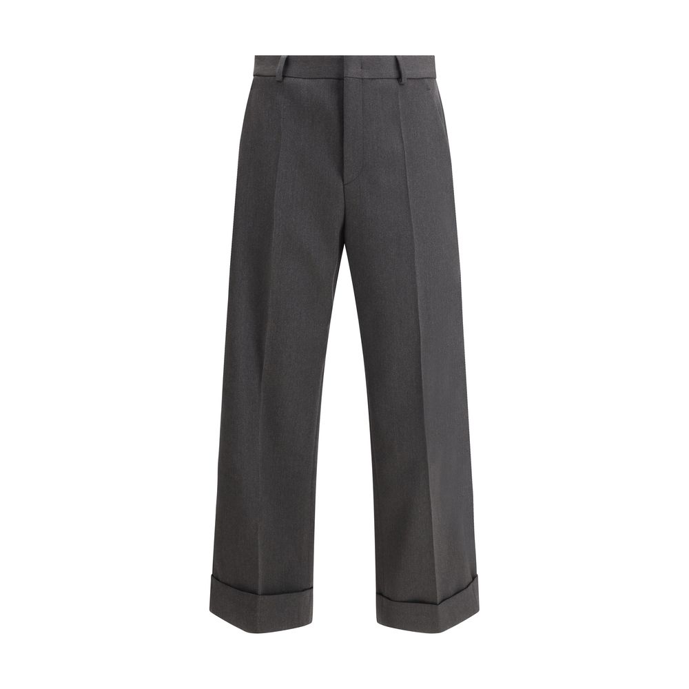 Calça de lã virgem da Valentino, modelagem larga, zíper frontal e fecho de colchete, dois bolsos laterais embutidos, dois bolsos traseiros tipo fenda, bainha dobrada, caimento regular.